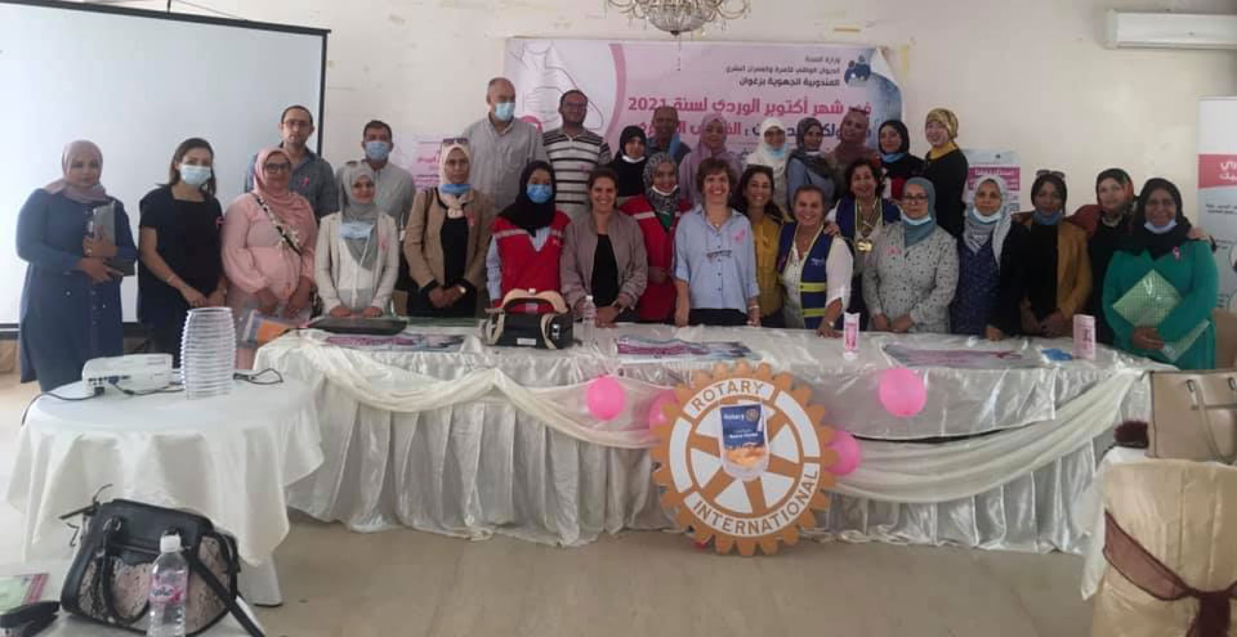 Le 8 octobre, dans le cadre de l'Octobre Rose, les membres du Rotary Club Tunis Notre-Dame se sont rendus à Zaghouan pour une journée de sensibilisation et de dépistage du cancer du sein. Cet événement a eu lieu au siège du Croissant Rouge de Zaghouan et a été inauguré par Monsieur Fathi Errabhi, premier Délégué chargé de la Gestion des affaires auprès du Gouvernorat de Zaghouan. Nous avons eu l'honneur d'accueillir également le Directeur Régional de la Santé, le Responsable régional des affaires de la Jeunesse et des Sports, ainsi que le Chef du Service de gynécologie Obstétrique D du Centre de Maternité de Tunis.